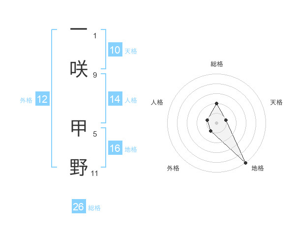一咲 甲野さんを姓名の画数から五運を鑑定