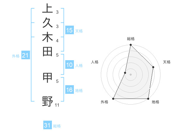 上久木田 甲野さんを姓名の画数から五運を鑑定