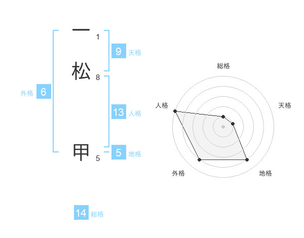 一松 甲さんの総格は14画の1点!