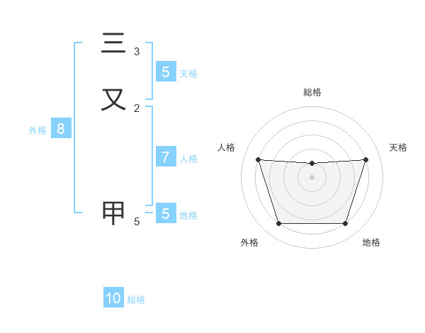 三又 甲さんの天格は5画の4点!