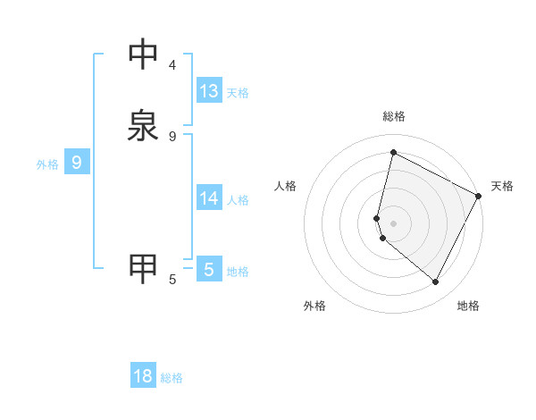 中泉 甲さんの総格は18画の4点!