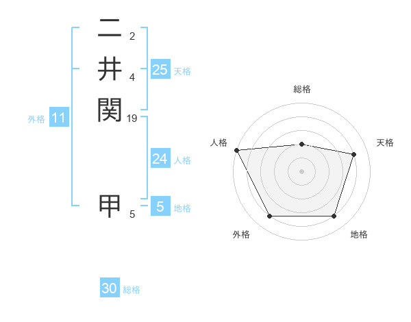 二井関 甲さんの天格は25画の4点!