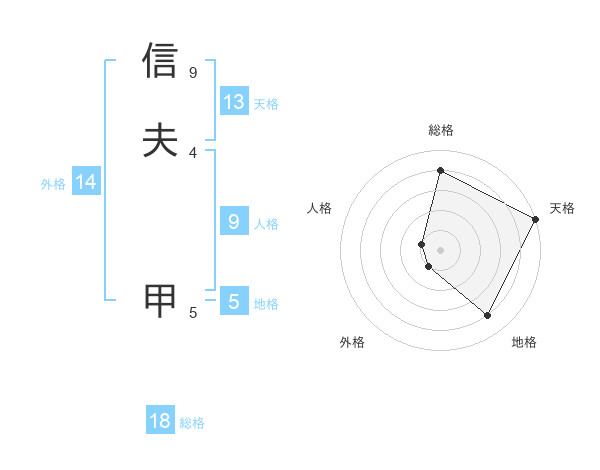 信夫 甲さんの天格は13画の5点!
