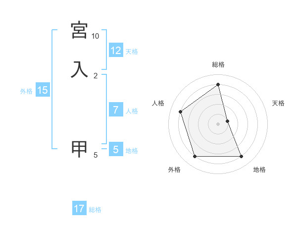 宮入 甲さんの天格は12画の1点!