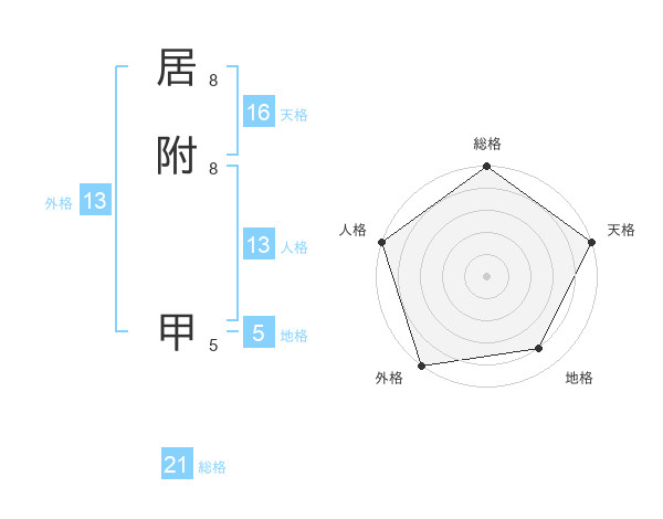 居附 甲さんの総格は21画の5点!