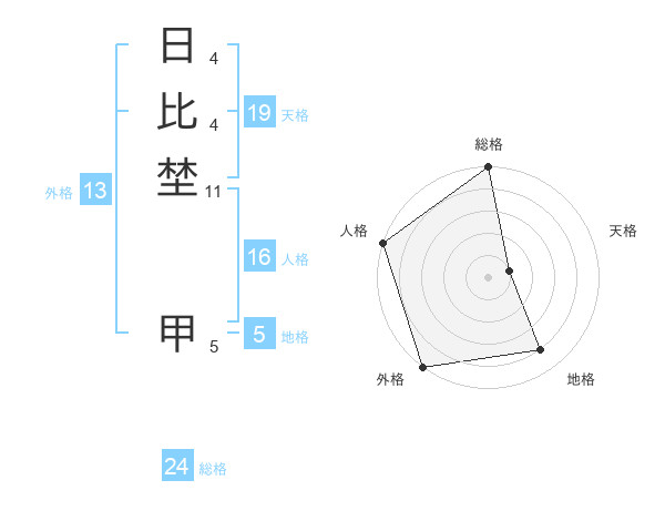 日比埜 甲さんを姓名の画数から五運を鑑定