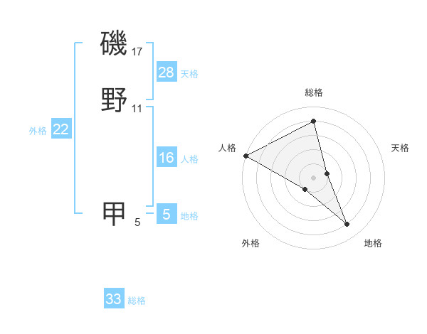 磯野 甲さんの人格は16画の5点!