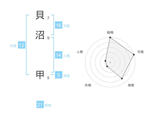 貝沼 甲さんの総格は21画の5点!