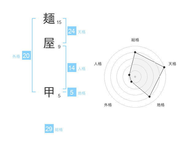 麺屋 甲さんを姓名の画数から五運を鑑定