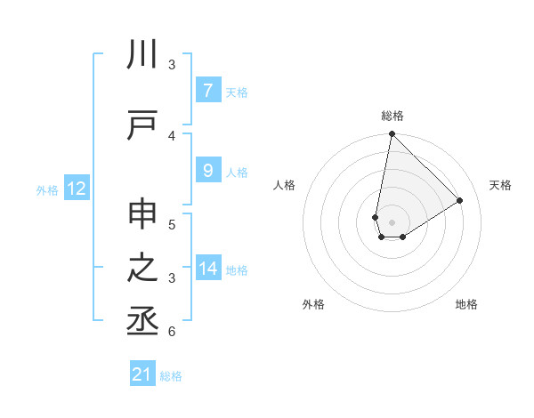 川戸 申之丞さんの総格は21画の5点!