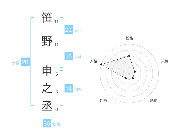 笹野 申之丞さんの天格は22画の1点!