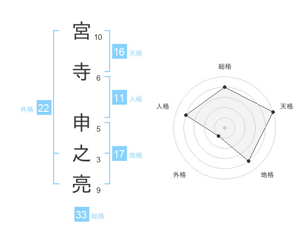 宮寺 申之亮さんの総格は33画の4点!