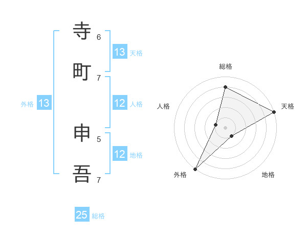 寺町 申吾さんを姓名の画数から五運を鑑定