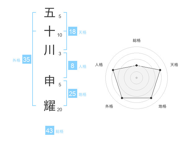 五十川 申耀さんを姓名の画数から五運を鑑定