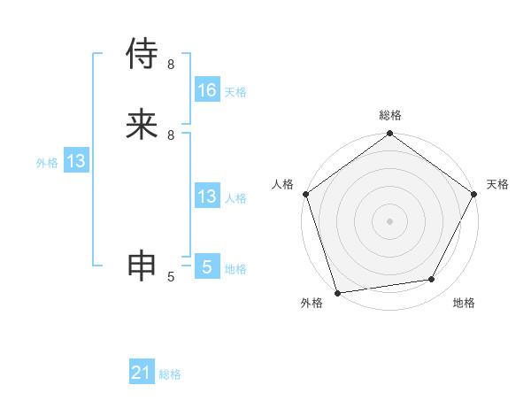 侍来 申さんの総格は21画の5点!