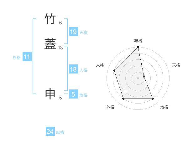 竹蓋 申さんの総格は24画の5点!