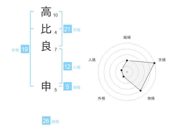 高比良 申さんの天格は21画の5点!