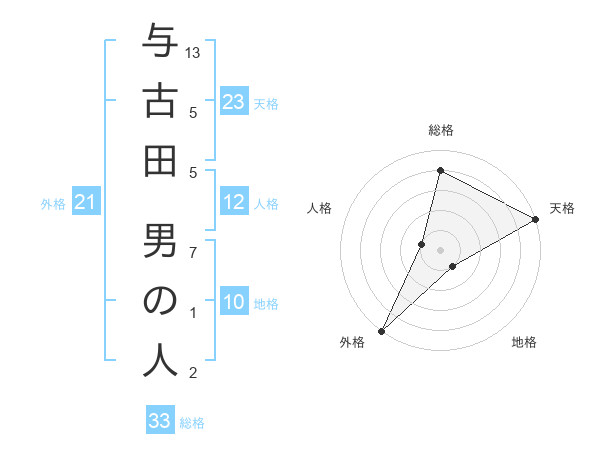 与古田 男の人さんの天格は23画の5点!