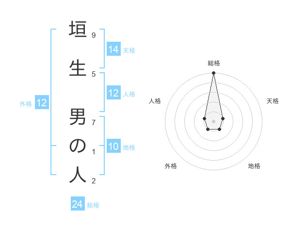垣生 男の人さんを姓名の画数から五運を鑑定