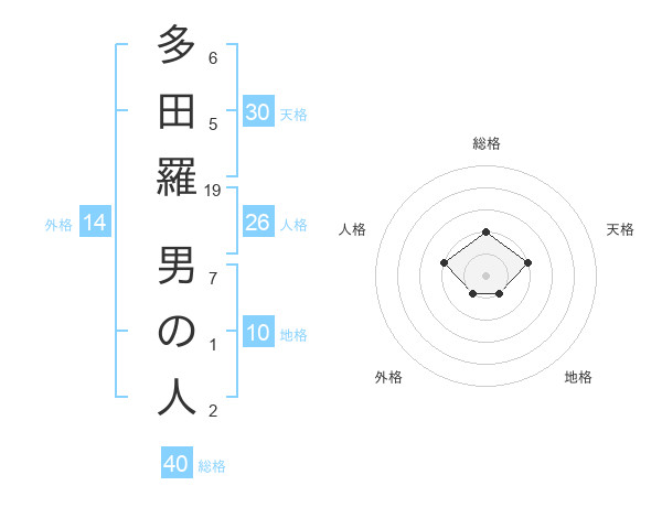 多田羅 男の人さんを姓名の画数から五運を鑑定