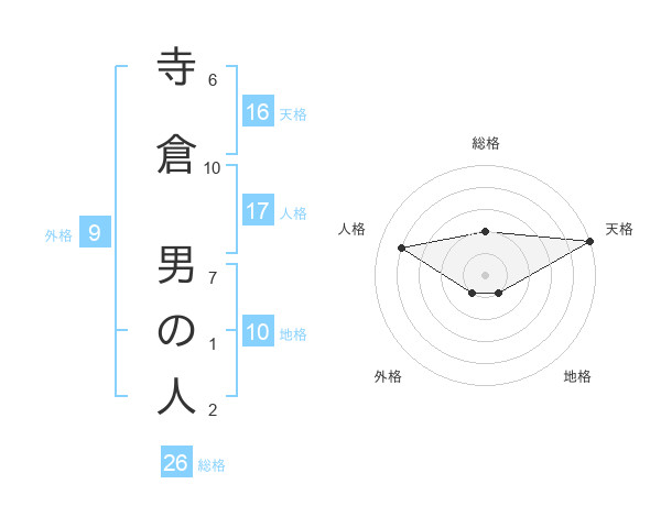 寺倉 男の人さんの天格は16画の5点!
