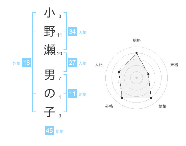小野瀬 男の子さんの総格は45画の4点!