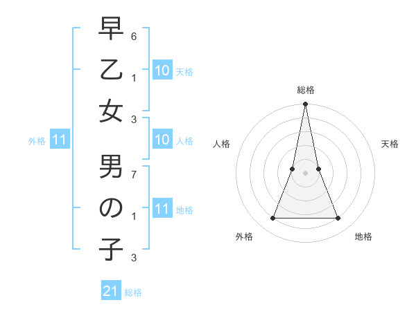 早乙女 男の子さんを姓名の画数から五運を鑑定