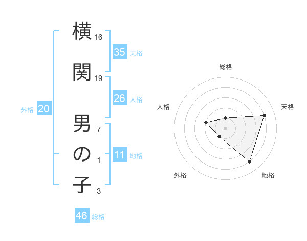横関 男の子さんの天格は35画の4点!