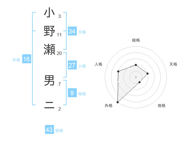 小野瀬 男ニさんを姓名の画数から五運を鑑定