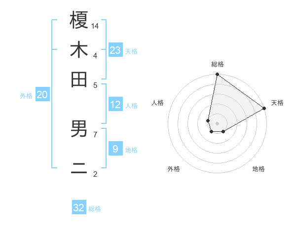 榎木田 男ニさんを姓名の画数から五運を鑑定