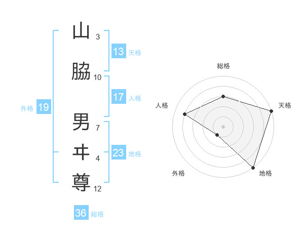 山脇 男ヰ尊さんを姓名の画数から五運を鑑定