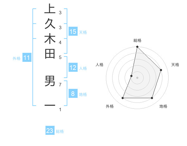 上久木田 男一さんの総格は23画の5点!