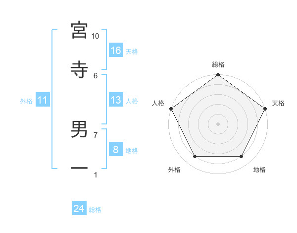 宮寺 男一さんの総格は24画の5点!