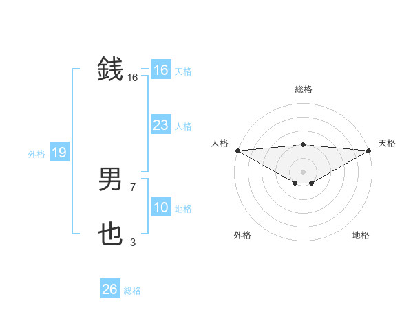 銭 男也さんの総格は26画の2点!