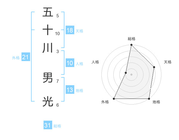 五十川 男光さんの総格は31画の5点!