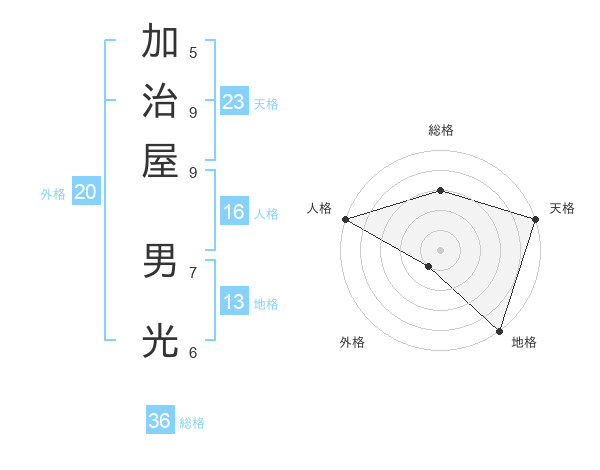 加治屋 男光さんを姓名の画数から五運を鑑定