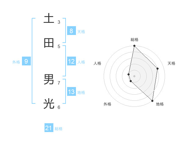 土田 男光さんの総格は21画の5点!