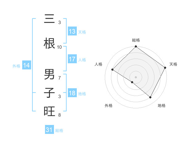 三根 男子旺さんを姓名の画数から五運を鑑定