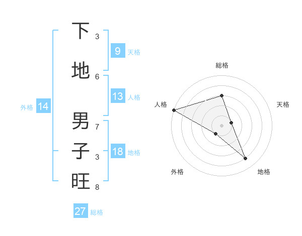 下地 男子旺さんを姓名の画数から五運を鑑定