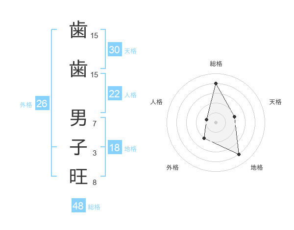 歯歯 男子旺さんの天格は30画の2点!