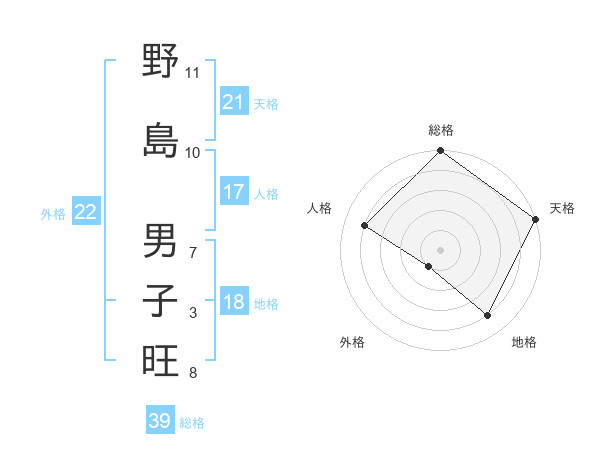 野島 男子旺さんを姓名の画数から五運を鑑定