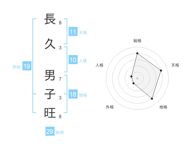 長久 男子旺さんを姓名の画数から五運を鑑定