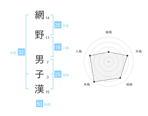 網野 男子漢さんを姓名の画数から五運を鑑定