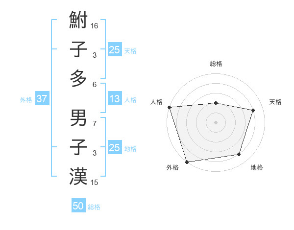 鮒子多 男子漢さんの総格は50画の2点!
