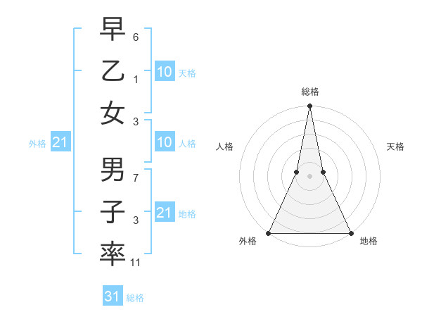 早乙女 男子率さんの外格は21画の5点!