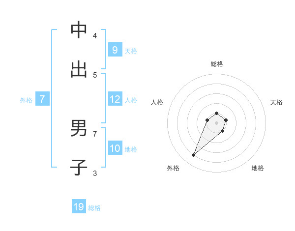 中出 男子さんの総格は19画の1点!