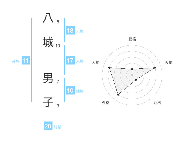 八城 男子さんの天格は18画の4点!