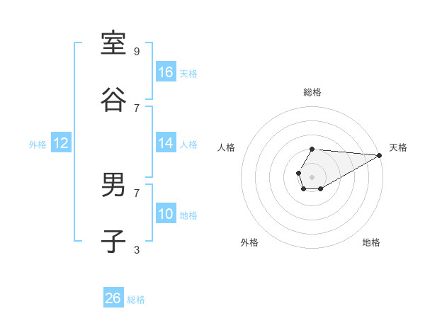 室谷 男子さんの天格は16画の5点!