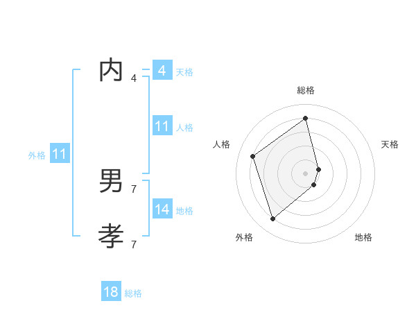 内 男孝さんの総格は18画の4点!