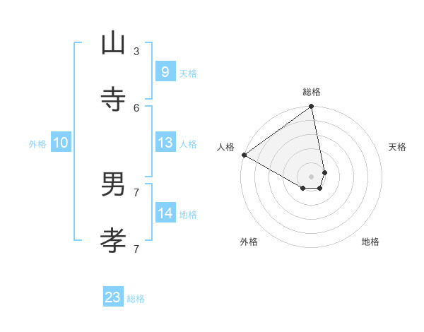 山寺 男孝さんの総格は23画の5点!